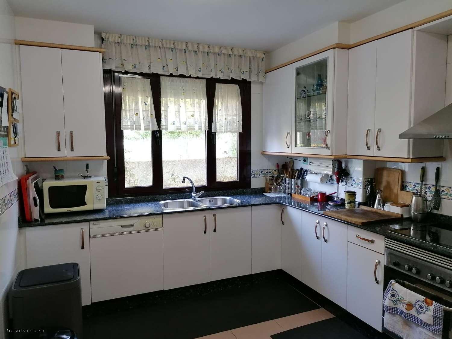 En el bajo de 80 metros caben perfectamente 3 coches, una zona de lavandería y un trastero grande. La siguiente planta consta de un salón enorme con muebles de castaño algunos de ellos. En el resto de las plantas están las habitaciones y los baños, en total consta de cuatro habitaciones, 2 baños, uno con bañera de hidromasaje y 2 aseos. Preinstalación de hilo musical. Calefacción de propano. También tiene zonas comunes donde está la piscina y la zona de juegos para los niños.